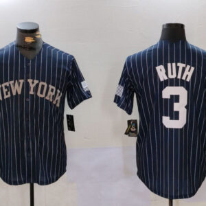 New York Yankees #3 Babe Ruth Navy Pinstripe Fashion Cool Ba…