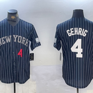 New York Yankees #4 Lou Gehrig Navy Pinstripe Fashion Cool B…