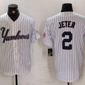 New York Yankees #2 Derek Jeter White Pinstripe Fashion Cool…