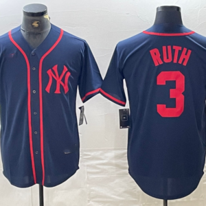 New York Yankees #3 Babe Ruth Navy Pinstripe Fashion Cool Ba…