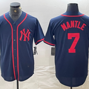 New York Yankees #7 Mickey Mantle Navy Red Fashion Cool Base…