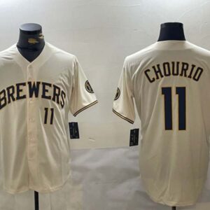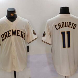 Milwaukee Brewers #11 Jackson Chourio Number Cream Stitched …