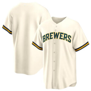 Baseball Jerseys Custom Milwaukee Brewers Cream Home Replica…