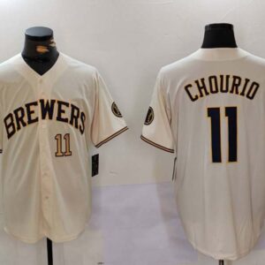 Milwaukee Brewers #11 Jackson Chourio Cream Home Baseball Li…