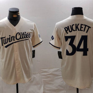 Minnesota Twins #34 Kirby Puckett Cream Cool Base Stitched B…