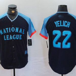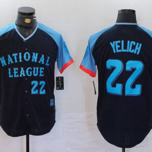 Milwaukee Brewers #22 Christian Yelich Navy 2024 All Star Li…