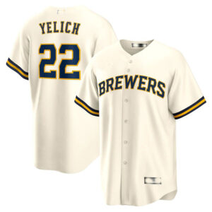 Milwaukee Brewers #22 Christian Yelich Cream Home Wordmark A…