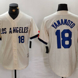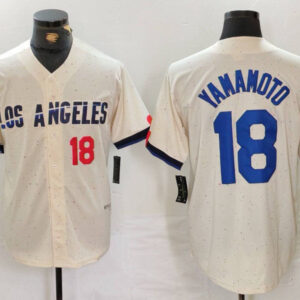 Los Angeles Dodgers #18 Yoshinobu Yamamoto Cream 2024 City C…