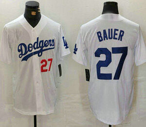 Los Angeles Dodgers #27 Trevor Bauer Number White Stitched B…