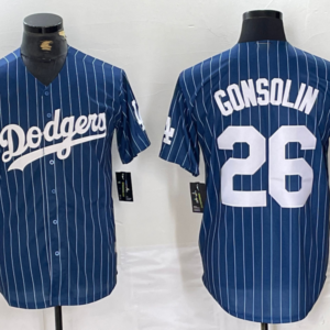 Los Angeles Dodgers #26 Tony Gonsolin Navy Blue Pinstripe St…
