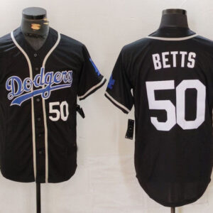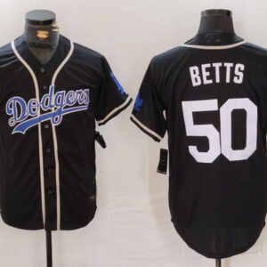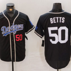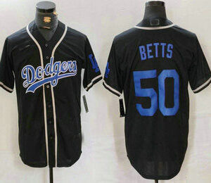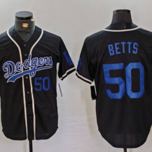 Los Angeles Dodgers #50 Mookie Betts Number Black White Cool…