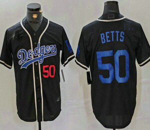 Los Angeles Dodgers #50 Mookie Betts Black White Cool Base S…
