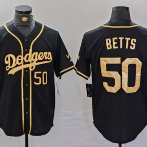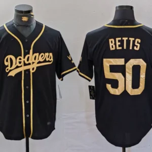 Los Angeles Dodgers #50 Mookie Betts Black Gold World Series…