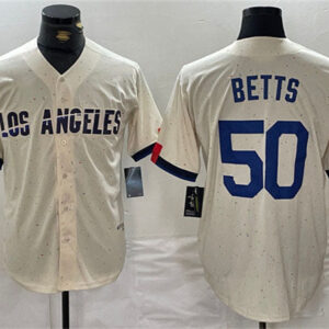 Los Angeles Dodgers #50 Mookie Betts Cream 2024 City Connect…