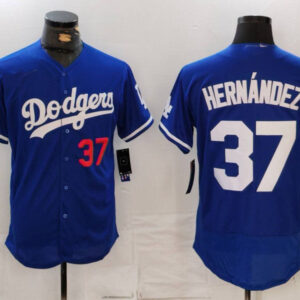 Los Angeles Dodgers #37 Teoscar Hernandez Number Blue Flex B…