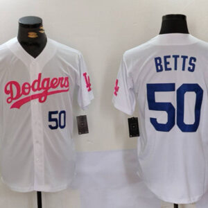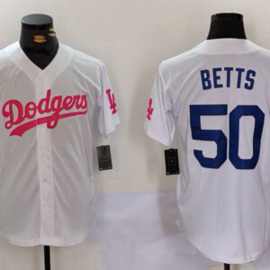 Los Angeles Dodgers #50 Mookie Betts White Pink Vin & Kobe P…