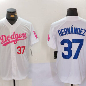Los Angeles Dodgers #37 Teoscar Hernández White Pink Vin & K…