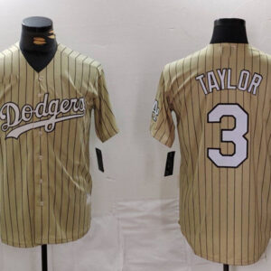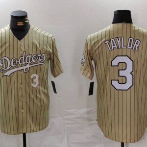 Los Angeles Dodgers #3 Chris Taylor Cream Pinstripe Stitched…