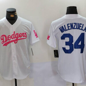 Los Angeles Dodgers #34 Fernando Valenzuela White Pink Vin &…