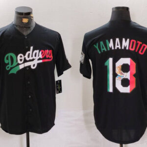 Los Angeles Dodgers #18 Yoshinobu Yamamoto Number Black Mexi…