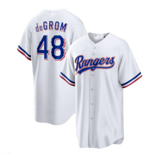 Texas Rangers #48 Jacob deGrom White Home Replica Player Jer…
