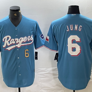 Texas Rangers #6 Josh Jung Number Light Blue Team Logo Cool …