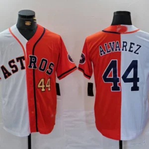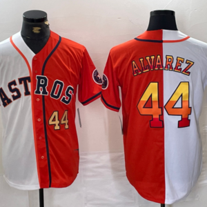 Houston Astros #44 Yordan Alvarez White Orange Split Stitche…