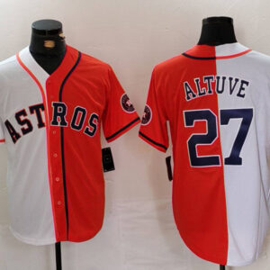 Houston Astros #27 Jose Altuve White Orange Blue Number Spli…