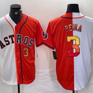 Houston Astros #3 Jeremy Pena White Orange Split Stitched Ba…