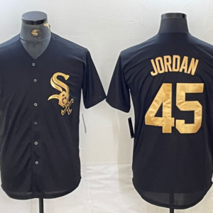 Chicago White Sox #45 Michael Jordan Black Gold Cool Base St…