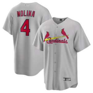 St. Louis Cardinals #4 Yadier Molina Gray Road Replica Playe…