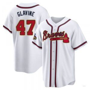 Atlanta Braves #47 Tom Glavine Gold White 2022 Program Jerse…
