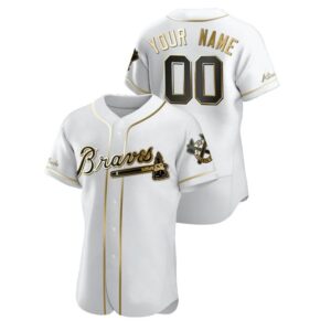 Custom Atlanta Braves Golden Edition White Jersey Birthday g…