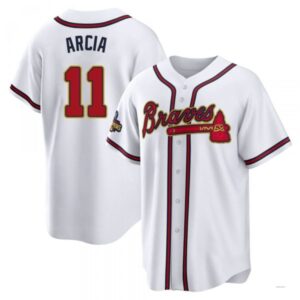 Atlanta Braves #11 Orlando Arcia Gold White 2022 Program Jer…