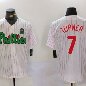 Philadelphia Phillies #7 Trea Turner White Green Cool Base S…
