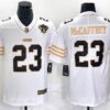 49ers 23 Christian McCaffrey White Gold Stitched Men Jersey