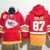 Chiefs 87 Travis Kelce Red Lace-Up Pullover Hoodie