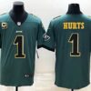 Eagles 1 Jalen Hurts Green Gold Stitched Men Jersey