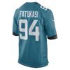 J.Jaguars #94 Folorunso Fatukasi Teal Game Player Jersey Stitched American Football Jerseys